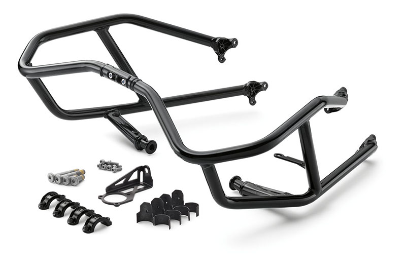 Kunststoffbeschichtete Stahl-Rohrbügel mit stabiler Befestigung am Rahmen schützen den Adventure Tank bei kleinen Stürzen und Umfallern.