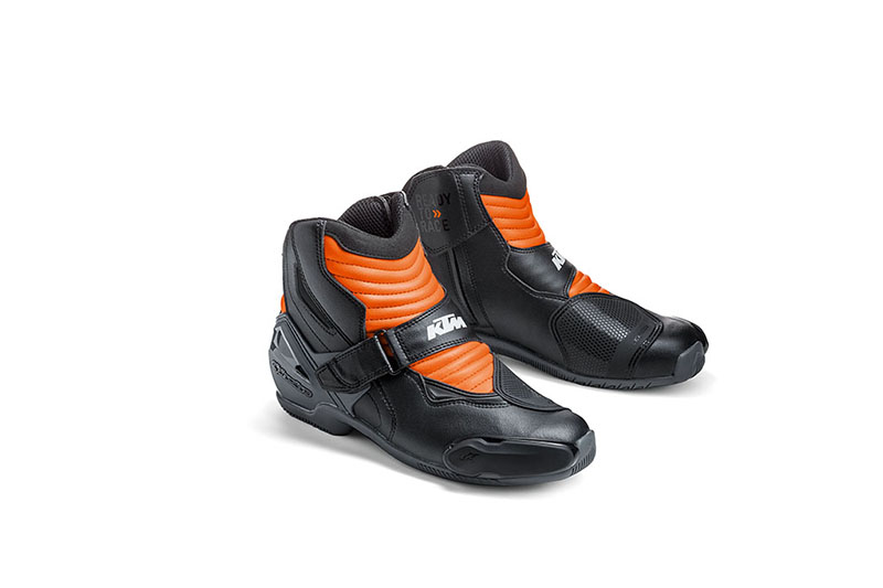 Bequeme Performance-Motorradstiefel mit niedrigem Schaft3D-Netzgewebefutter erhöht Tragekomfort und AtmungsaktivitätTPU-Schlagschutz am äußeren Knöchel, mit Schaumstoff unterlegt, Dual-Density-Knöchelschutz an der InnenseiteExterne TPU-Zehenschleifer für besseren AbriebschutzAnatomisch geformtes Fußbett aus hochelastischem Polyamid mit SchaftverstärkungObermaterial aus leichtem, strapazierfähigem Mikrofaser-GewebeAkkordeon-Flexzonen aus Mikrofaser-Gewebe für mehr Tragekomfort und bessere Beweglichkeit beim Auf- und AbsteigenAustauschbares, anatomisch geformtes Fußbett aus SchaumstoffEinfacher Einstieg von der Seite mit Reißverschluss und breiter Velcro-Klappe am Spann für präzisen SitzGesamte Sohle austauschbarExklusive Verbund-Gummi-Sohle für optimale Kombination aus Komfort und GriffigkeitExklusiv für KTM by Alpinestars89 % PVC / 10 % Gummi / 1 % Sonstige