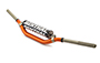 Der Renthal Twinwall 996, im KTM-orangen Design, das sind zwei Lenker in einem: Ein äußerer gewährleistet maximale Festigkeit gegen Beschädigungen von außen (z. B. Sturz) und ist gegen Korrosion zusätzlich harteloxiert. Der Innere aus einer Speziallegierung ist ebenfalls harteloxiert, um ihn vor Beschädigungen durch die Lenkerarmaturen zu schützen. Nylon-Einsätze im Innenrohr ermöglichen geringere Wandstärken. Dies spart Gewicht und wirkt sich positiv auf die Flex-Eigenschaften aus. Gummidichtungen an den Übergangsstellen der beiden Rohre verhindern das Eindringen von Wasser, Schmutz, Reinigungsmitteln sowie anderen Verunreinigungen. Wird mit Lenkerpolster geliefert. Abmessungen: A = 118 mm, B = 811 mm, C = 74 mm