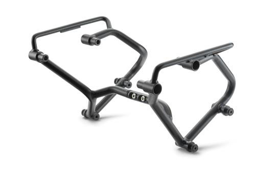 Stabile Stahl-Rohrkonstruktion. Befestigung des Seitentaschensets. Nicht in Kombination mit Akrapovic "Slip-on Line" verwendbar. Kann auch in Kombination mit dem Topcase-Träger montiert werden