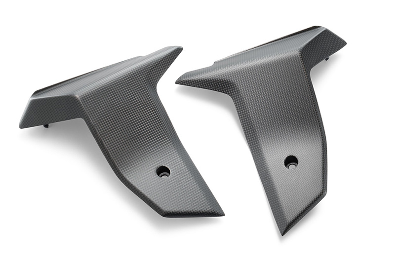 Setze deine KTM mit edlem Karbon perfekt in Szene. Hergestellt aus hochwertigsten Karbonfasern Um ein Vielfaches steifer und leichter als die Serien-Kunststoffkomponenten Seidenmatte Oberfläche