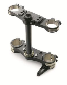 Gefertigt aus hochfestem Aluminium. Edle Eloxal-Oberfläche. Perfekt zur Verwendung auf der Rennstrecke. Optisches Highlight. CNC-gefräste Aluminium-Gabelbrücke. Steifer als die Seriengabelbrücke. Leichter als die Seriengabelbrücke. Präziseres Handling bei harten Bremsmanövern. Bessere Druckverteilung im Klemmbereich der Gabel.