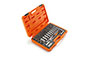 60-teiliger 3/8 Zoll Werkzeugkasten in Orange mit Qualitäts-Chrom-Vanadium-Werkzeug. Knarre (mit Sicherung), Knebel, zwei Verlängerungen und Steckschlüssel. Außensechskant von 6 bis 24, Innensechskant von 3 bis 10, Kreuzschlitz und Schlitz sowie Torx Bits von 15 bis 55. Damit lassen sich die kleinen Arbeiten an deiner KTM schnell und zuverlässig erledigen. Ob Demontage der Verkleidungsteile oder Ölwechsel, hier findest du bestimmt das passende Werkzeug.