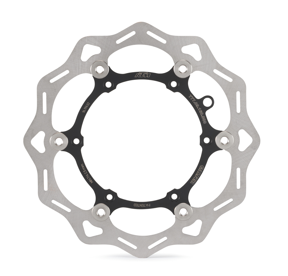 Schwimmend gelagert. Außenring aus rostfreiem Hochleistungs-BremsenstahlInnenring eloxiert. Minimaler Abrieb der Bremsbeläge