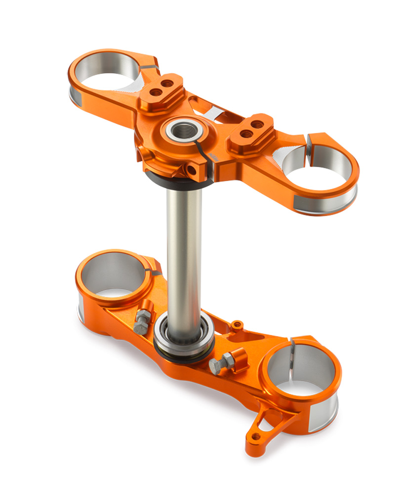 Edle Eloxal-Oberfläche. Gefertigt aus hochfestem Aluminium. Optisches Highlight. Perfekt zur Verwendung auf der Rennstrecke. CNC-gefräste Aluminium-Gabelbrücke. Steifer als die Seriengabelbrücke. Leichter als die Seriengabelbrücke. Präziseres Handling bei harten Bremsmanövern. Bessere Druckverteilung im Klemmbereich der Gabel