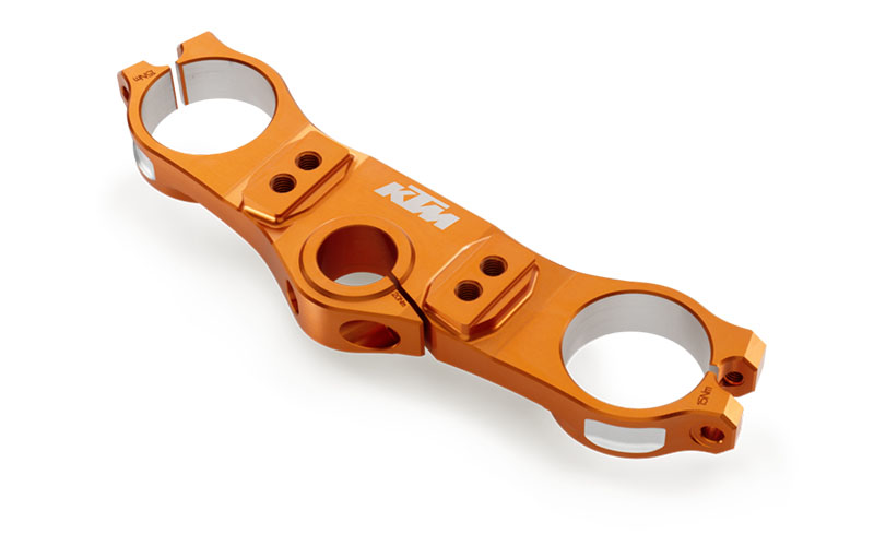 Edle Eloxal-Oberfläche. Gefertigt aus hochfestem Aluminium. Optisches Highlight. CNC-gefräste Aluminium-Gabelbrücke. Leichter als die Seriengabelbrücke. Oberer Teil der Factory-Gabelbrücke
