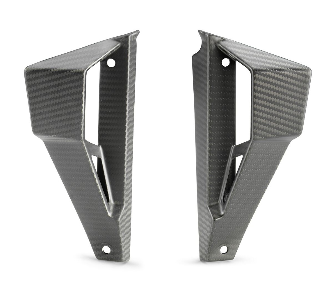 Gewichtseinsparung gegenüber Serienkomponenten. Extrem leicht. Hergestellt aus hochwertigstem Karbon. Hochwertigste Verarbeitung. Optisches Highlight. Perfekt, um den Look deines Motorrades zu verändern. Seidenmatte Oberfläche. Kann anstatt der serienmäßig montierten Winglets am Kühlerspoiler montiert werden für eine etwas unauffälligere und schlankere Optik.