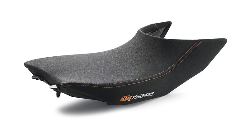 Neue Optik, mehr Komfort und mehr Sportlichkeit: in der neuen Ergo Sitzbank ist alles vereint. - Optimal abgestimmt auf das Design der KTM 1290 Super Duke R - Optimierte Form: vorne schmäler für bessere Kontrolle durch mehr Kontakt zum Fahrzeug - Spezialschaum (3D-Struktur-Mesh) mit eingearbeiteter Tunnelform für gleichmäßige Druckverteilung - Sitzhöhe +20 mm