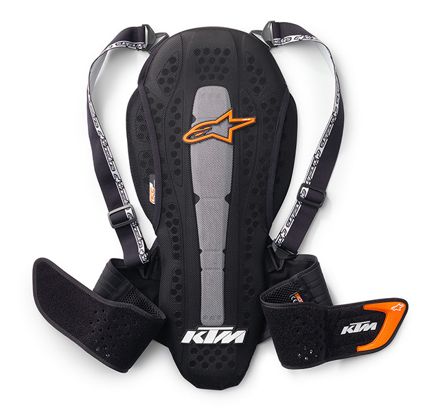 Sportlicher RückenprotektorDünner, leichter und atmungsaktiver KernEnergieabsorbierende High-Density-SchaumpolsterSich verankernde Platten zur Verhinderung von ÜberdehnungExzellente Schlagdämpfung, auch bei wiederholten EinschlägenErgonomische Anpassung an den Rücken durch 5-Platten-KonstruktionZweiseitig verstellbarer Hüftgurt mit FrontverschlussVerstellbarer SchultergurtExklusiv für KTM by Alpinestars
