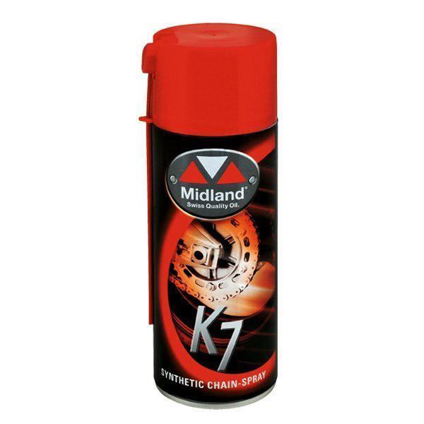Ein weisser Kettenspray für Ketten von Motorrädern, Motorrollern, Fahrrädern oder Antriebsketten von anderen Aggregaten. Dank synthetischen Grundstoffen und ausgreifter Additivtechnologie entspricht der K7 Spray den höchsten Qualitätsanforderungen und erhöht die Lebensdauer der Kette nachhaltig.