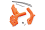 Verhindert das Abscheuern des Rahmens durch Schmutz, Stürze oder die Stiefel des Fahrers. Schützt Hose und Stiefel vor Verbrennungen auf der Auspuffseite.