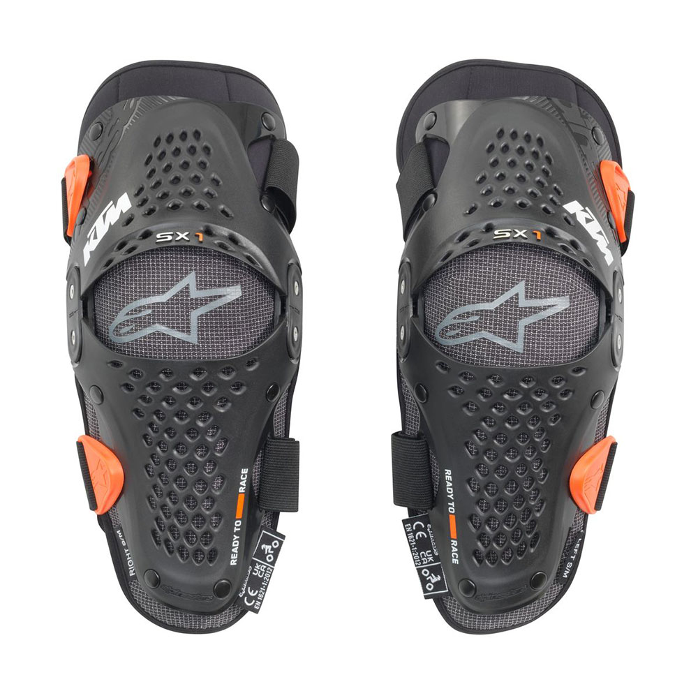 Innovativer, professioneller Knieschutz, Perforierte Ventilationszonen, Für die jugendliche Anatomie entwickelt, Dreidimensional geformt, Optimierter Tragekomfort, Extrem leicht und stabil konstruiert, Exklusiv für KTM von Alpinestars, 36 % Polypropylen / 34 % Polyurethan / 18 % EVA / 8 % Polyester / 4 % Sonstige